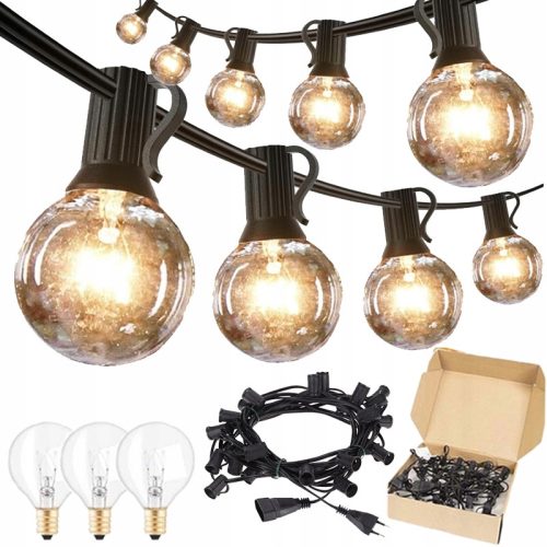 【Łańcuch świetlny na zewnątrz z 30 żarówkami】 Ta bajkowa lampa składa się z 30 wysokiej jakości wodoodpornych żarówek o łącznej długości 920 cm, z odległością między dwoma żarówkami 30,5 cm. Może stworzyć przytulną i świąteczną atmosferę dla Ciebie i Twojej rodziny. Nadaje się na ślub, urodziny, boże narodzenie, Halloween, dekoracja wnętrz na zewnątrz