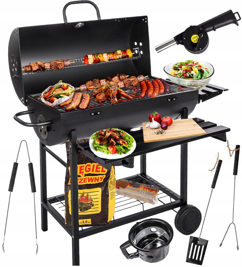 Grill posiada duży ruszt oraz mały, który jest umiejscowiony nad większym. Regulowany przepływ powietrza zapewni odpowiednią temperaturę. Wszystko możemy sprawdzić na grillu, który jest wyposażony w termometr. Grill wykonany z solidnej grubej blachy! Na spodzie grilla znajdziemy popielnik oraz regulowanie paleniska.