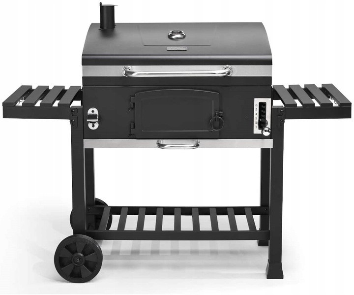 Grill węglowy wykonany ze stali w klasycznym bezpiecznym stylu z szerokim zakresem funkcji.