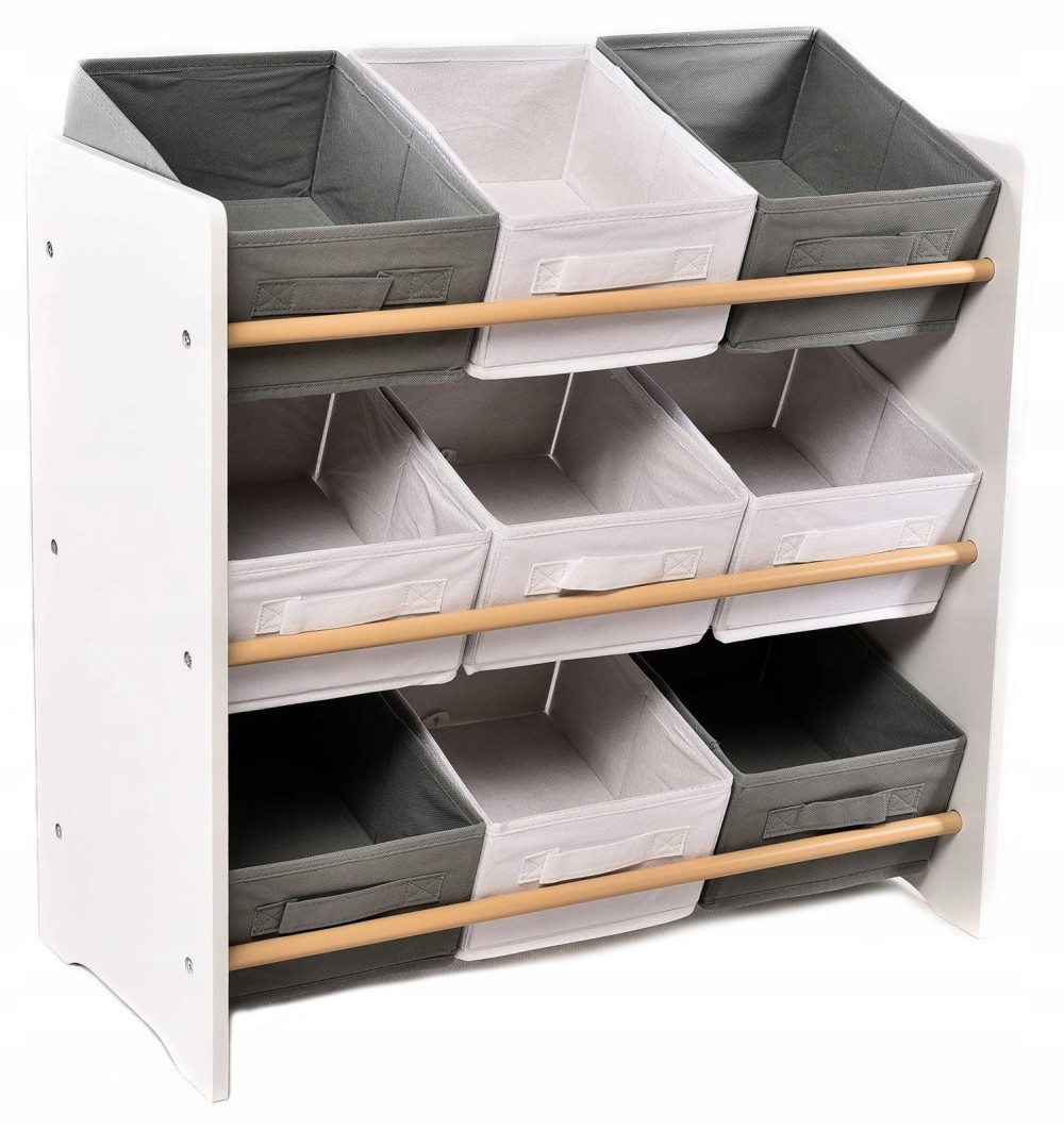 SIWY BIAŁY SZARY REGAŁ POJEMNIKI ZABAWKI ORGANIZER