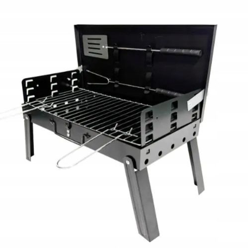 Przenośny grill ogrodowy, który łatwo się składa i jest wyjątkowo kompaktowy, co ułatwia jego transport.
