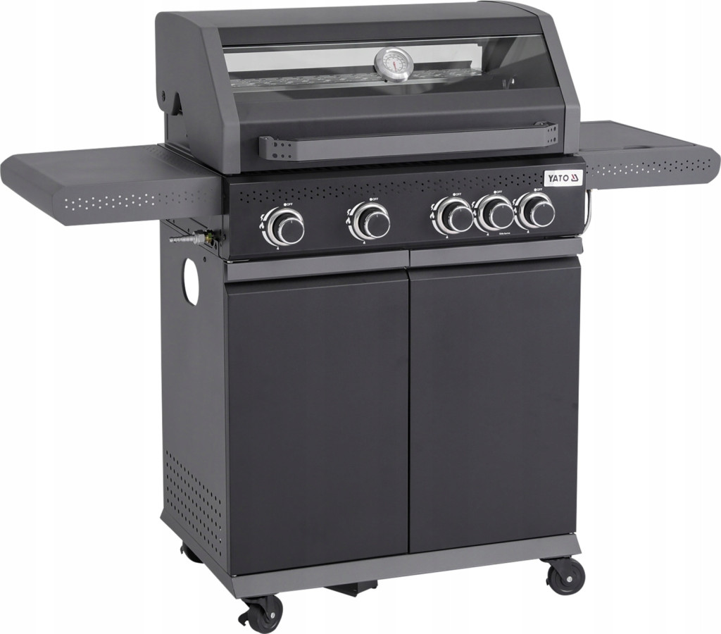 Unikalny, nowocześnie wyglądający grill gazowy YATO Okaya 4+1 i łącznej mocy 14,2kW. Wyposażony w niezawodny, żeliwny ruszt o powierzchni 68 x 42 cm oraz kratkę podgrzewającą ze stali nierdzewnej.