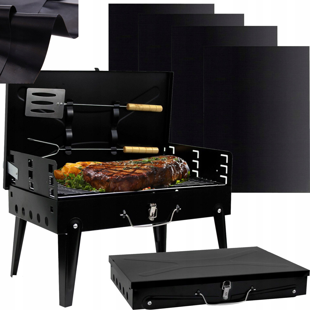 GRIL TURISTICO DE GRADINA VALIZĂ PORTATĂ PLATĂBILĂ + TACĂMURI + 4 x COPAȘTE