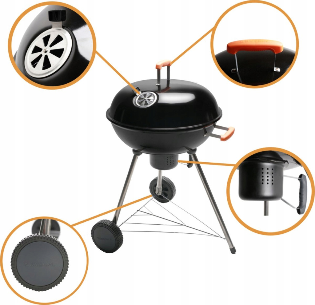 Zaprojektowany z myślą o wygodzie, grill węglowy posiada wbudowane koła, umożliwiając łatwe przemieszczanie i ustawianie. Niezależnie od tego, czy przesuwasz go po podwórku czy przechowujesz w garażu, koła zwiększają ogólną przenośność.