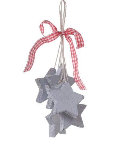 6 gwiazdek z drewna mango. Lekkie, wszystko spięte kokardą w kratkę.