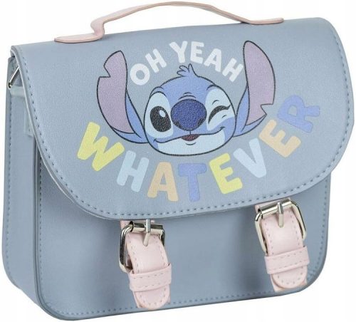 Torebka na ramię w formie modnej listonoszki idealnie uzupełni każdą, dziecięcą stylizację. Torebeczka jest jasnoniebieskiego koloru, ma dwie klamerki z różowymi paseczkami i nadruki przedstawiające Stitcha oraz napisy tematyczne.
