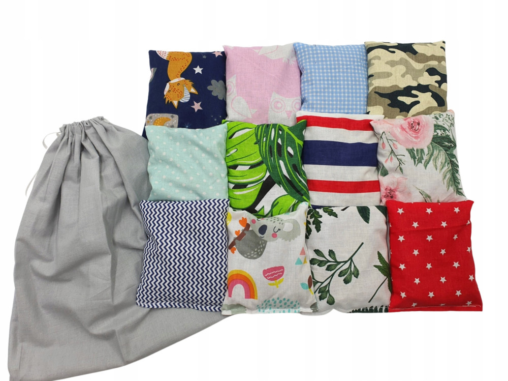 Woreczki uszyte są bardzo gęstym ściegiem, aby zapobiec rozpruciu, jednak ze względu bezpieczeństwa zabawa powinna odbywać się TYLKO POD OPIEKĄ OSOBY DOROSŁEJ.