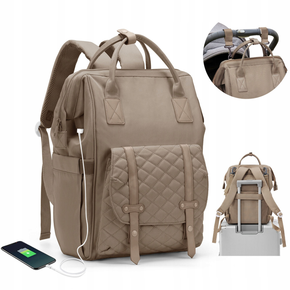 Funkcjonalny stylowy i funkcjonalnie plecak, który jest w pełni funkcjonalny i organizera, nowoczesnego, funkcjonalnego rodzica. Plecak wyposażony w rękę, przewieszony przez ramię lub łatwo podłączony do wózka za pomoc dwóch pasków, a urządzenie jest bezpłatne. Plecak jest lekki i pojemny. To rozwiązanie dla rodziców, którzy mają wolne ręce i mogą aktywnie korzystać z czasu ze swoimi dziećmi.