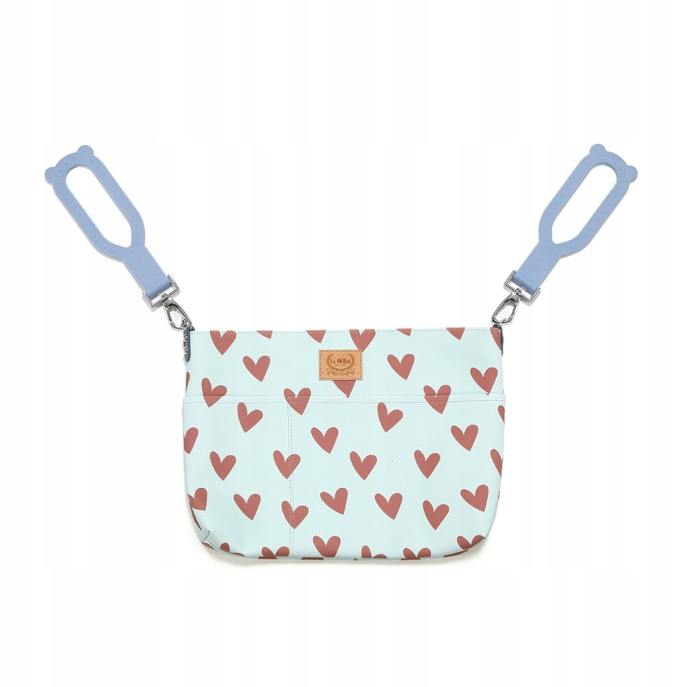 które umożliwią w prosty sposób zaczepienie organizera tak by był pod ręką. Materiał z którego wykonane są uchwyty to specjalne elastyczne tworzywo, które uchroni przed zsuwaniem się po rączkach wózka. Dzięki karabińczykom uchwyty w bardzo prosty sposób można zamontować i zdjąć.