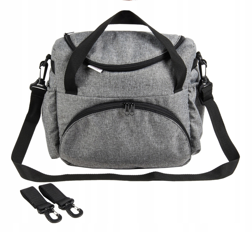 Torbę można trzymać za uchwyty lub dzięki dopinanemu paskowi nosić na ramieniu (pasek posiada regulację) oraz zawiesić na rączkach wózka dzięki specjalnym haczykom zapinanym na rzep które w każdej chwili można zdemontować