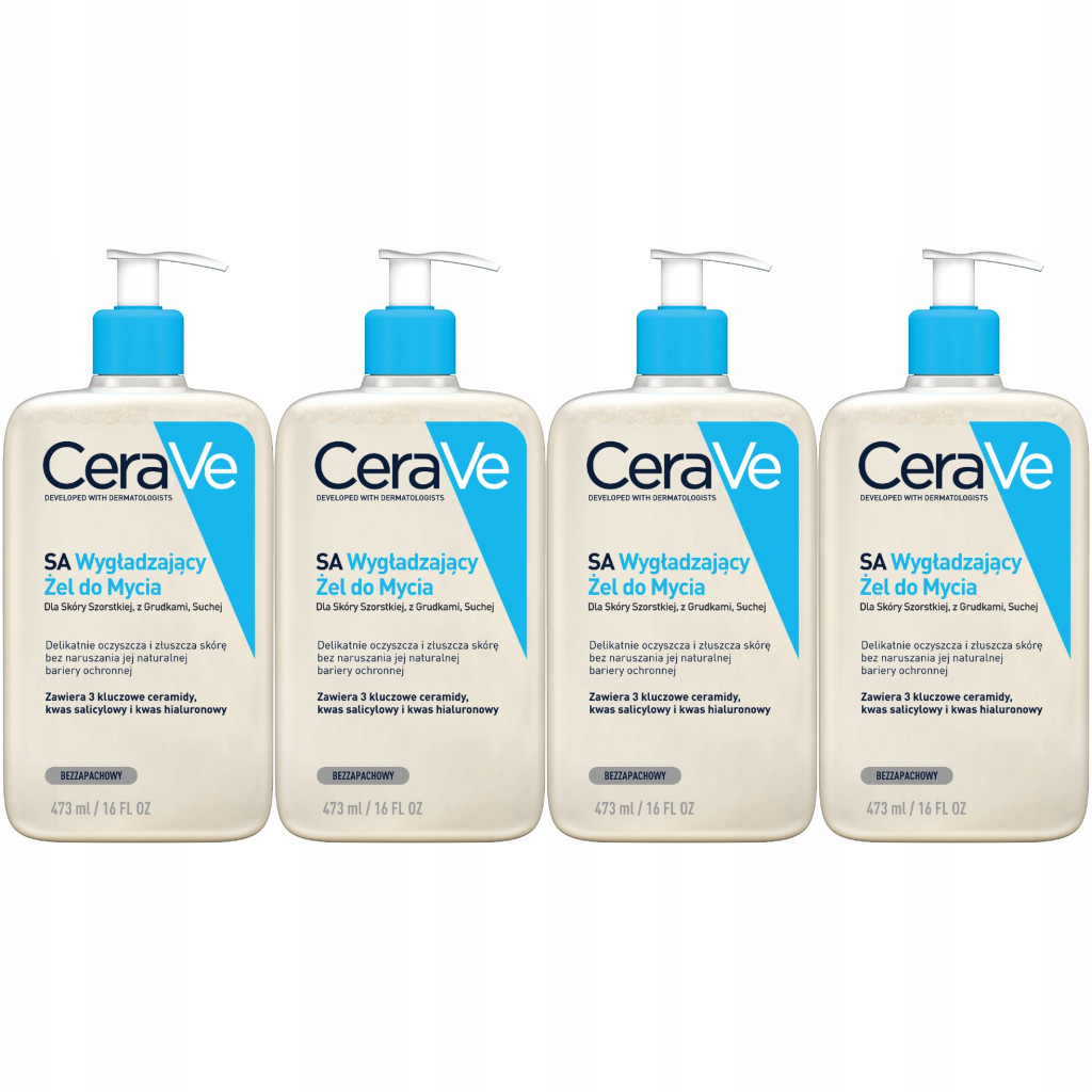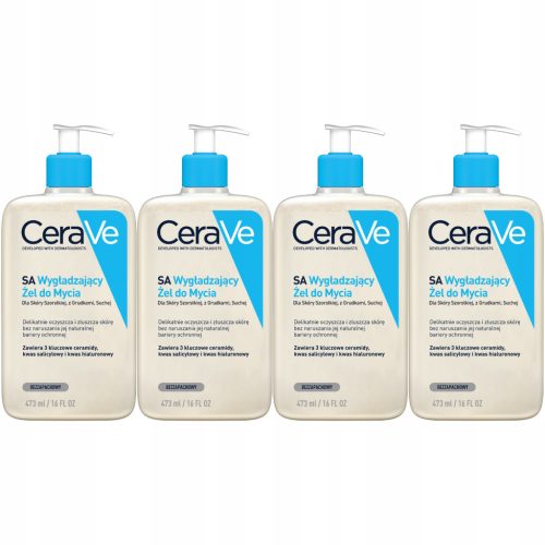 Bezzapachowy Żel Wygładzający do Mycia CeraVe SA Dla Skóry Szorstkiej z Grudkami 4 x 473ml.