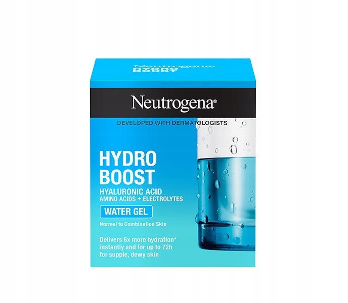 Ten lekki żelowy krem został wzbogacony o składniki obecne w skórze, które w naturalny sposób wspomagają proces jej nawilżenia. Zawiera o 20% więcej kwasu hialuronowego*, aminokwasy oraz elektrolity. Udowodniono naukowo, że Water Gel Hydro Boost natychmiast zapewnia 6 razy więcej nawilżenia** – przez 72 h. Dla gładkiej i elastycznej skóry oraz o 80% silniejszej bariery skórnej.