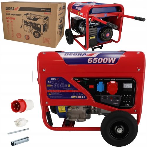 Agregat prądotwórczy DEDRA DEGB7503K to urządzenie elektroenergetyczne stanowiące samodzielne źródło prądu. Przenośny generator prądu jednofazowego oraz trójfazowego o maksymalnej mocy wyjściowej 6500W może być wykorzystany do generowania prądu zmiennego, zasilania odbiorników elektrycznych o napięciu 230V oraz 400V. Przydatne urządzenie jako awaryjne zasilanie w gospodarstwach domowych, na działkach oraz na budowie.