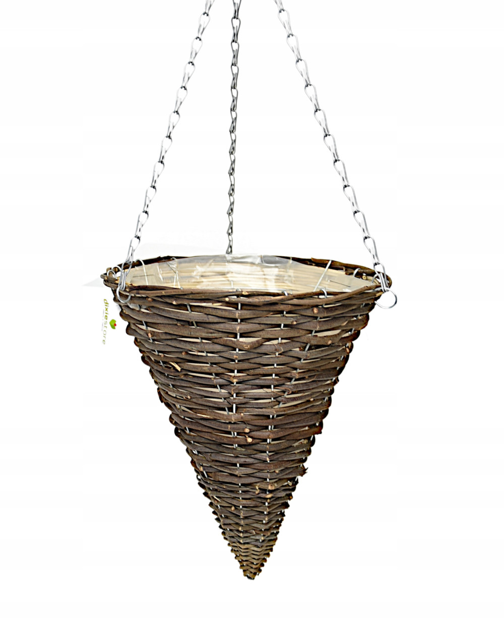Wnętrze kosza wyścielone jest folią, co umożliwia sadzenie roślin bezpośrednio w jej wnętrzu, bez dodatkowych osłonek. Stelaż donicy wykonany jest z ocynkowanego drutu, dzięki czemu kosz będzie dłużej służyć nam jako ekspozytor roślin.