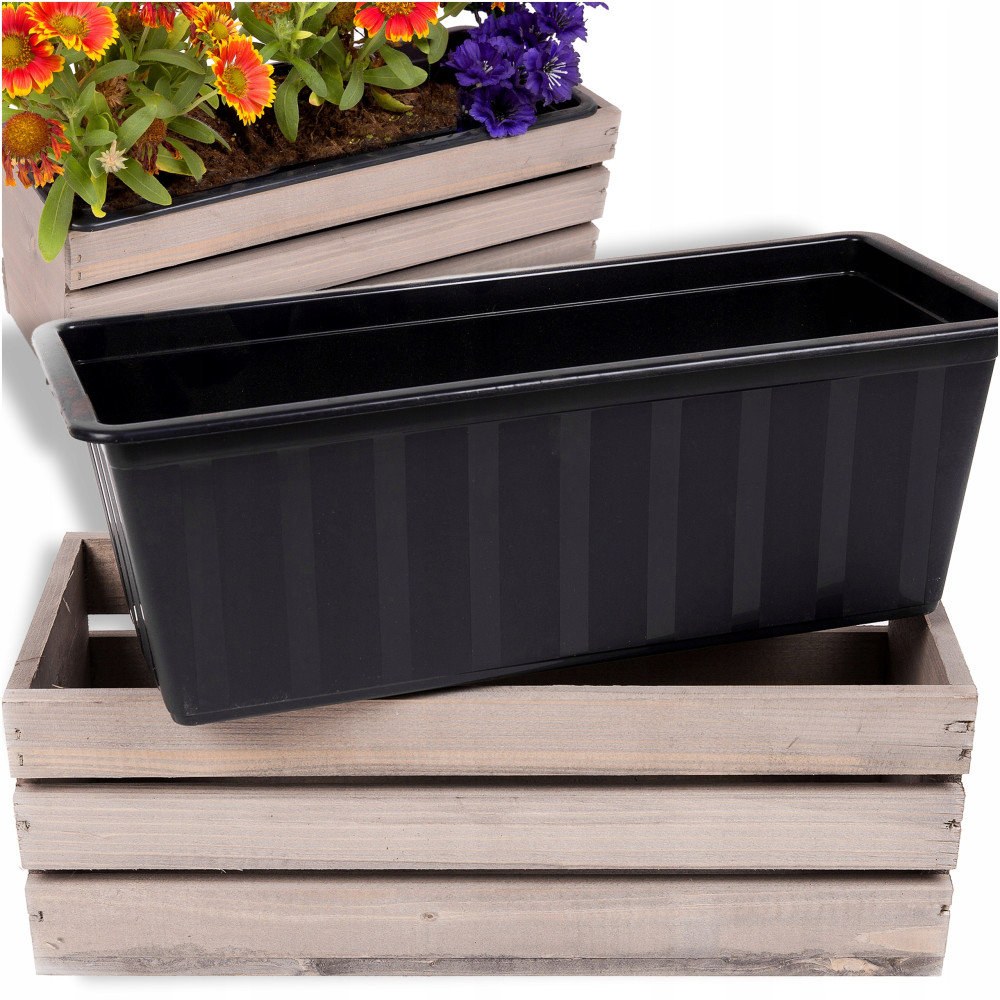 SKRZYNKA DREWNIANA NA KWIATY ZIOŁA BALKONOWA PLASTIKOWY WKŁAD NA BALKON