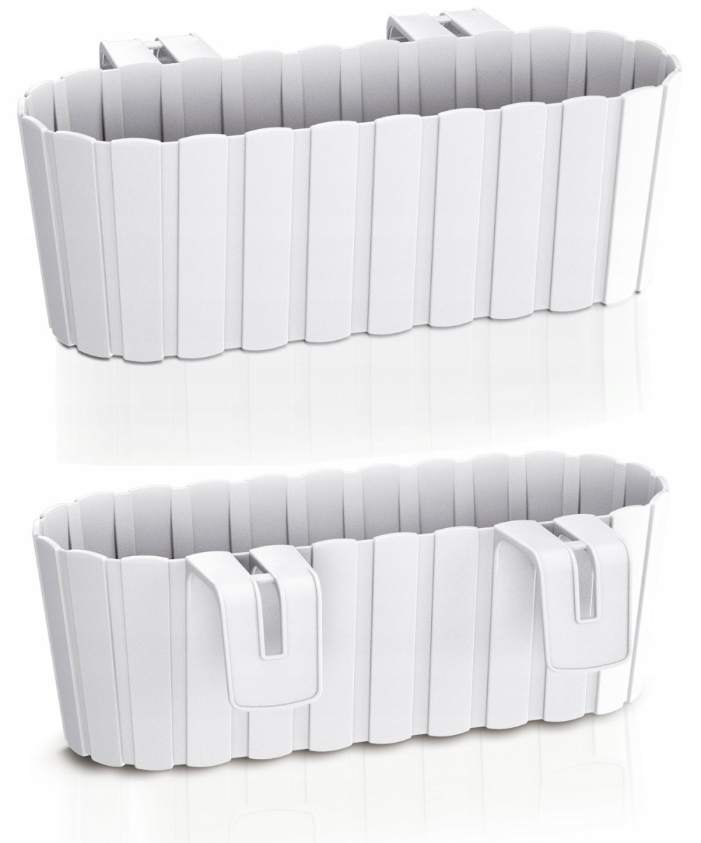 Owalne skrzynki balkonowe do wieszania na poręczach. Prosta forma przypominająca naczynia zbudowanie z małych deseczek, nada przestrzeni unikalnej ekspresji.