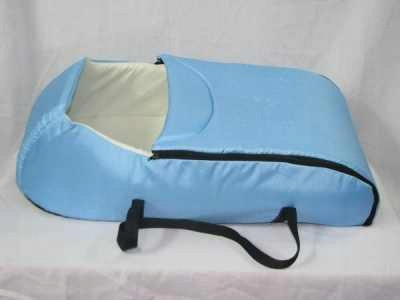 Całe nosidełko wykonane jest z gąbki 1,5 cm. Dzięki gąbce jest ciepłe i wygodne dla dziecka. Posiada usztywnione dno, z możliwością wyciągnięcia usztywnienia. Po bokach posiada uchwyty. Górna część jest odpinana co ułatwia wkładanie i wyciąganie dziecka.