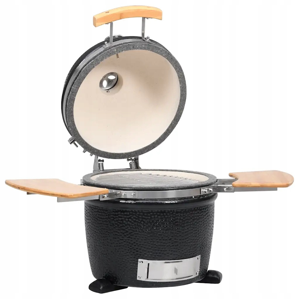 Grill ceramiczny Kamado działający na węglu czy drewnie, ma dużą siatkę do gotowania o średnicy 27 cm. Grill oferuje wiele funkcji, takich jak grillowanie, pieczenie, gotowanie lub po prostu utrzymywanie ciepłej temperatury jedzenia.Ten ceramiczny grill ma bardzo solidną pokrywę z odpowietrznikiem i termometrem. Dzięki dwuwarstwowemu odpowietrznikowi, można kontrolować przepływ powietrza a takżę temperaturę.Na dwóch składanych półkach bocznych dają można umieszczać swoje rzeczy do grillowania. Wysokiej jakości ceramiczne wykonanie grilla sprawia, że grill jest bardzo wytrzymały i przyciągący zwrok.Wysokość grilla to 44 cm, można go stawiać na stole. Nasz grill Kamado z pewnością zaoferuje Tobie i Twoim przyjaciołom wiele zabawy.