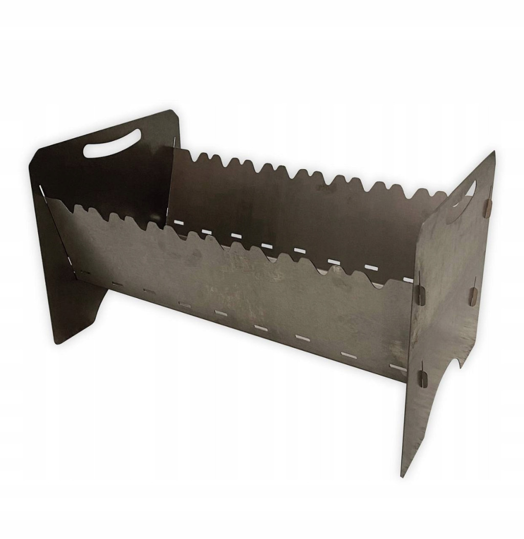 Grill turystyczny został wykonany z wysokiej jakości stali o grubości 1 mm, co gwarantuje jego trwałość i stabilność podczas użytkowania.