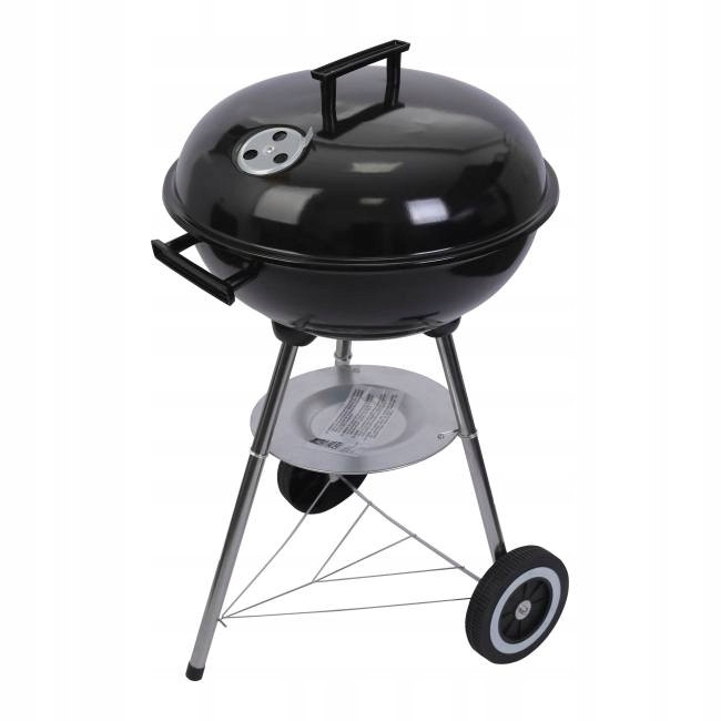 Grill okrągły o dużej stabilności, Głęboka emaliowana misa paleniskowa, Pokrywa