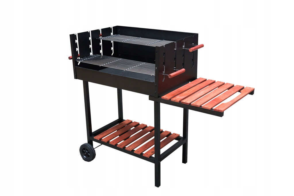 Grill jest niesamowicie stabilny i solidny, a dzięki zastosowaniu najwyższej jakości materiałów posłuży przez wiele sezonów. Dzięki pokrywie, grillowanie jest możliwe w każdych warunkach pogodowych, pokrywa ma też za zadanie utrzymywać ciepło wewnątrz grilla i chronić żywność przed kontaktem z owadami. Grill węglowy posiada również ruchome przesłony, które służą do regulacji cyrkulacji powietrza.