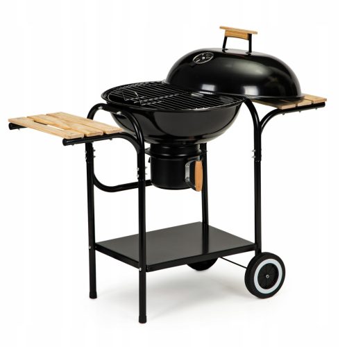Dwie drewniane półki oraz praktyczna półka dolna – więcej miejsca na akcesoria grillowe i przyprawy!