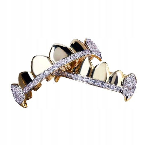 Platerowane grille Zestawy górnego i dolnego grilla, grawerowana błyszcząca cyrkonia