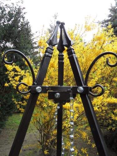 Ręcznie wykonany, kuty grill, trójnóg niezwykle stabilny i funkcjonalny w kolorze czarnym malowany proszkowo.