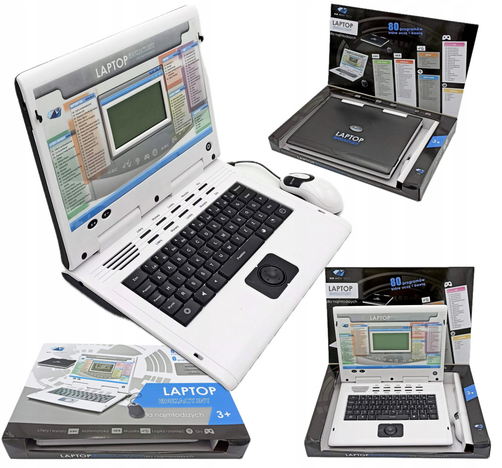 Ten niezwykle realistyczny notebook z dźwiękiem dla ciekawskich i nowoczesnych dzieci zawiera 80 edukacyjnych programów w języku polskim, a także gry i zabawy.
