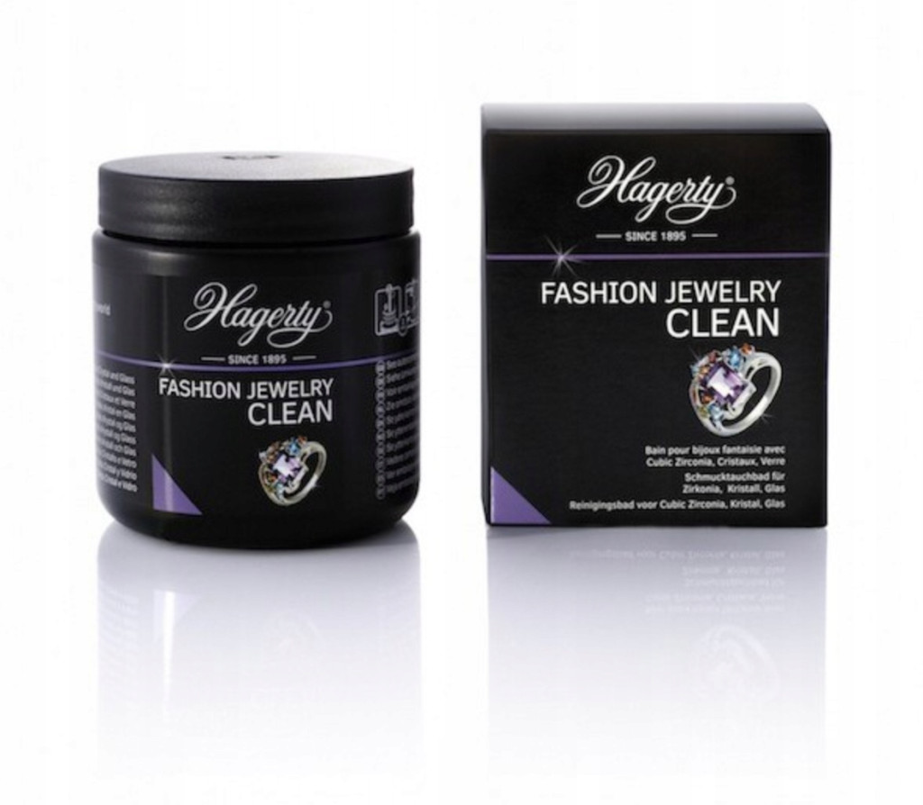 Czyści i pielęgnuje biżuterię z kryształami, cyrkoniami i szkłem bez ich uszkadzania. Utlenianie, szkodliwe pocenie się spowodowane przez kosmetyki i perfumy są dokładnie czyszczone, a biżuteria odzyskuje blask i blask. Kąpiel ma delikatny zapach i sprawia, że biżuteria nabiera blasku. Fashion Jewelry Clean przywraca blask pierścionkom, bransoletkom i innej biżuterii, która jest zmatowiała. Kąpiel czyszcząca chroni i oczyszcza broszki, naszyjniki, kolczyki i wszelkie inne przedmioty z cyrkonu, kryształu lub szkła. Utrzymuje w głębi zmatowiałą i oksydowaną biżuterię. Pielęgnacja działa szybko, jest skuteczna i nie niszczy biżuterii. Kąpiel zawiera środki powierzchniowo czynne i naturalny rozpuszczalnik, a także mały koszyczek do pozostawienia biżuterii w środku dla łatwego użycia. Środki zwilżające wnikają w brud i gwarantują skuteczne sprzątanie. Klejnoty są ponownie wyczyszczone i lśniące. Kąpiel daje niemal natychmiastowy efekt i nie powoduje mikrozarysowań ani śladów na biżuterii modowej.