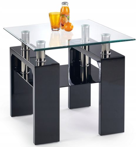 Prezentowana ława firmy Halmar stanowi funkcjonalny i atrakcyjny element wyposażenia wnętrza. Kwadratowy blat ze szkła to praktyczne rozwiązanie do każdego salonu. Znajdująca się pod blatem półka to dodatkowe miejsce na książkę, ulubione czasopismo, a nawet pojemnik z chusteczkami. O stabilność podczas użytkowania zadba z kolei wytrzymały stelaż z MDFu lakierowanego w kolorze czarnym.