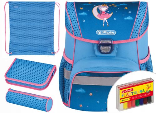 Plecak szkolny Herlitz Loop posiada nóżki stabilizujące oraz odblaski 3M Scotchlite na przedniej i bocznych kieszeniach oraz na szelkach. Wygodny uchwyt pozwala na komfortowe przenoszenie tornistra.