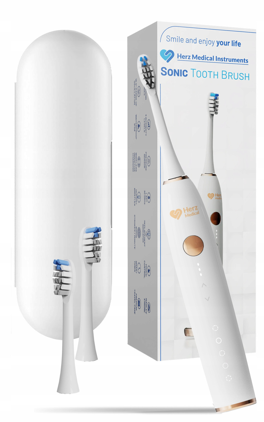Soniczna szczoteczka do zębów Herz Medical Instruments została wyposażona w najnowocześniejszy hiperboliczny magnetyczny silnik soniczny. Dzięki niemu precyzyjnie i niezwykle skutecznie usuwa wszelkie zanieczyszczenia z powierzchni zębów i dziąseł. Zapewnia higieniczną czystość, chroniąc jednocześnie przed paradontozą i innymi chorobami przyzębia.