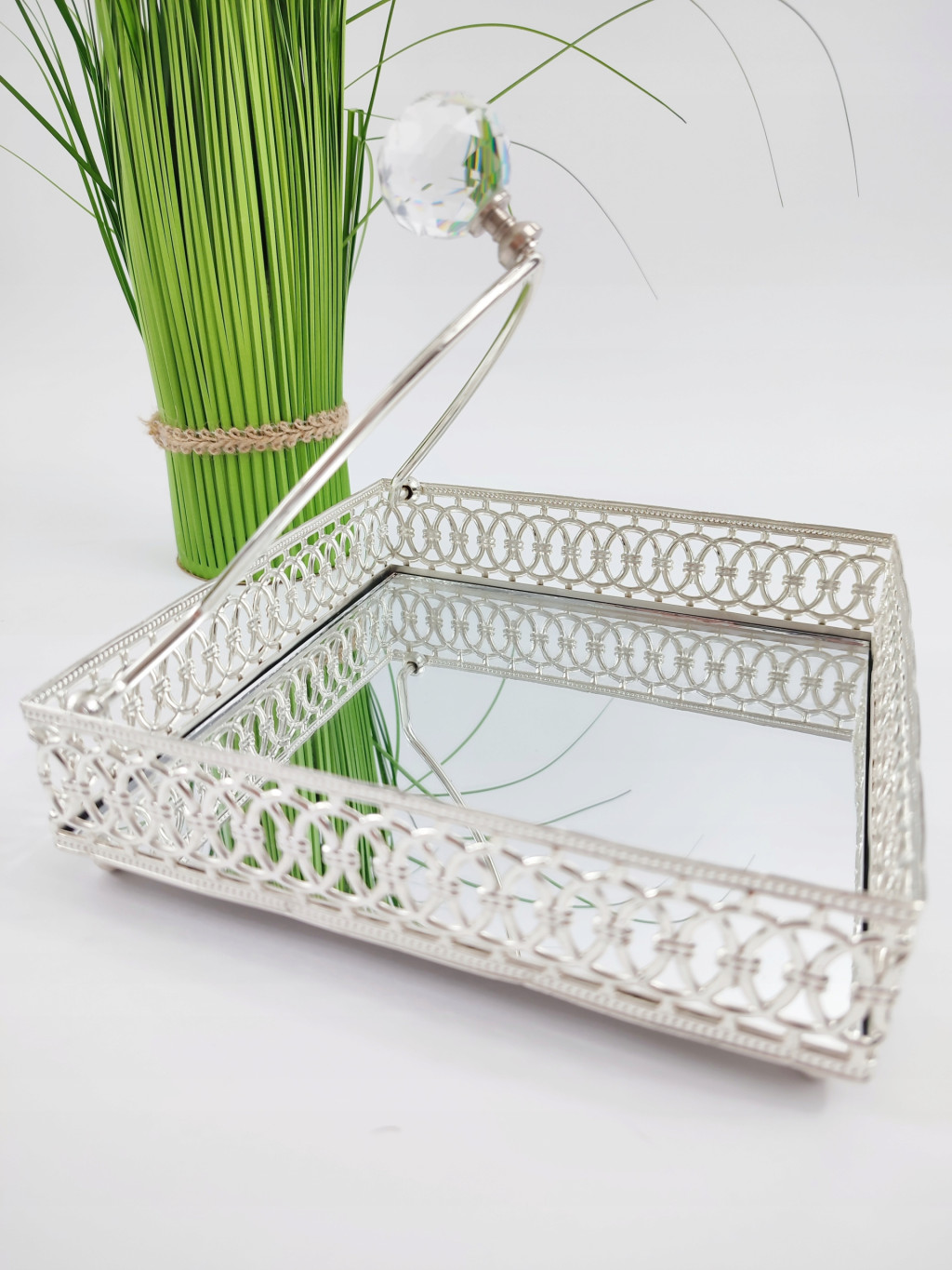 Elegancki pojemnik na serwetki o charakterze dekoracyjnym. Optymalne wymiary pozwolą na przechowywanie dużej ilości serwetek, nie musisz więc martwić się o częste uzupełnianie pojemnika. Serwetnik posiada lustrzane dno oraz kryształową kulę która dociska serwetki co pomaga przy wyciągnięciu pojedyńczej sztuki oraz zapobiega na otwartej przestrzeni przed wiatrem.