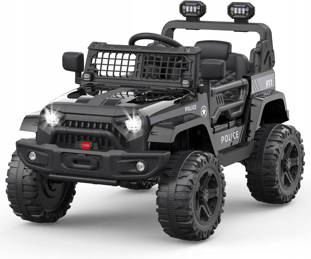 ????MOC 12 V I REALISTYCZNA KONSTRUKCJA: Regulowany pas bezpieczeństwa, jasne reflektory LED, zamykane drzwi i siateczkowa szyba przednia zapewniająca styl terenowy, z silnikiem 12 V i oponami trakcyjnymi do jazdy w różnym terenie.