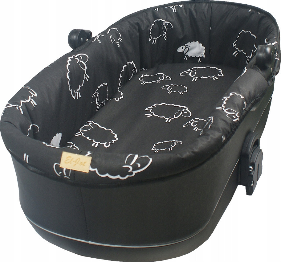 Usztywniona wkładka do gondoli wózka dziecięcego, które mają budę zasuwaną na zamek błyskawiczny wyposażony jest w gumowe ściągacze boczne oraz gumki z haczykami mocującymi, które umożliwiają dopasowanie wkładki do obwodu prawie każdej gondoli wózka dziecięcego. W nóżkach są wszyte dwie kieszonki na drobiazgi.