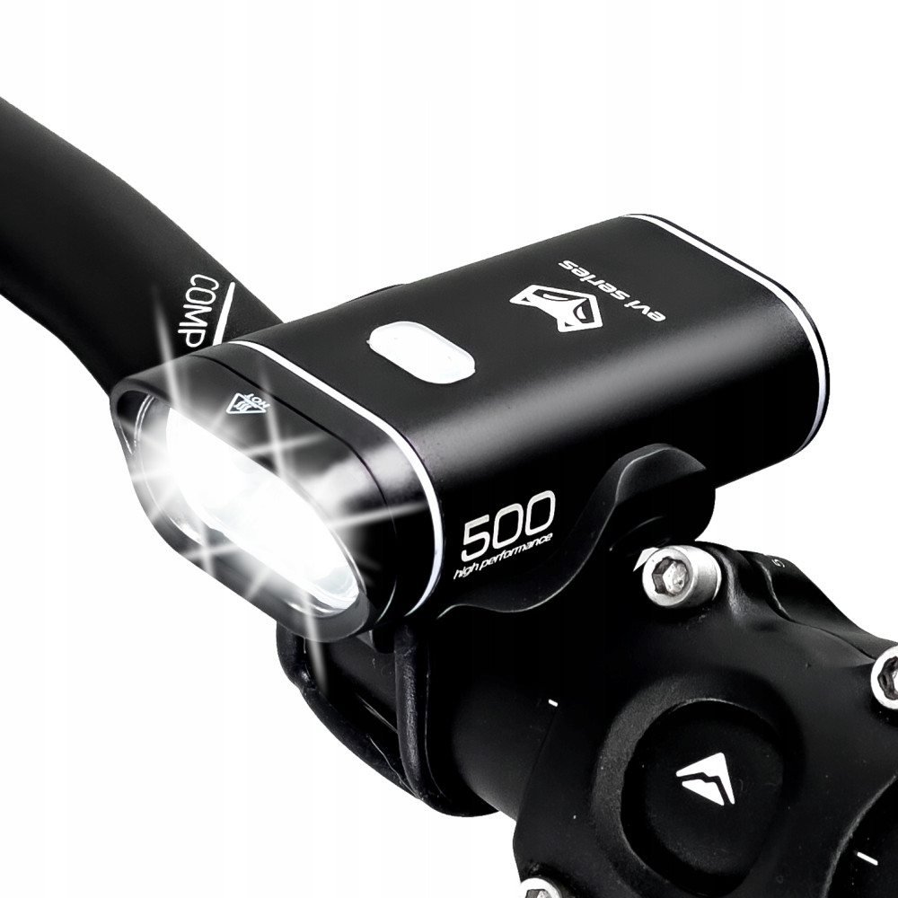 Dane techniczne: Diody – 2x v500 o łącznej mocy 500lm Akumulator – 1500 mAh 3.7V 3 Tryby pracy - 100% mocy / 50% mocy / miganie Wodoodporność – tak - odporność na opady i zachlapania Wykończenie – aluminiowy korpus silikonowy włącznik grawerowane logo oraz model Ładowanie - USB (kabel w zestawie) Wskaźnik poziomu naładowania akumulatora Prąd ładowania - 5V 1A (około 2 godziny do pełnego naładowania) Możliwość ładowania podczas pracy Wymiary - 88 x 41 x 24mm, Waga: 91g Montaż - Silikonowy pasek montażowy z plastikowym uchwytem (pasujący na każdy rodzaj rowera) Model – iLIGHT pro v500