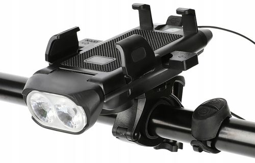 Uchwyt rowerowy 4w1 jest wyposażony w światło LED, które pełni rolę lampki rowerowej.