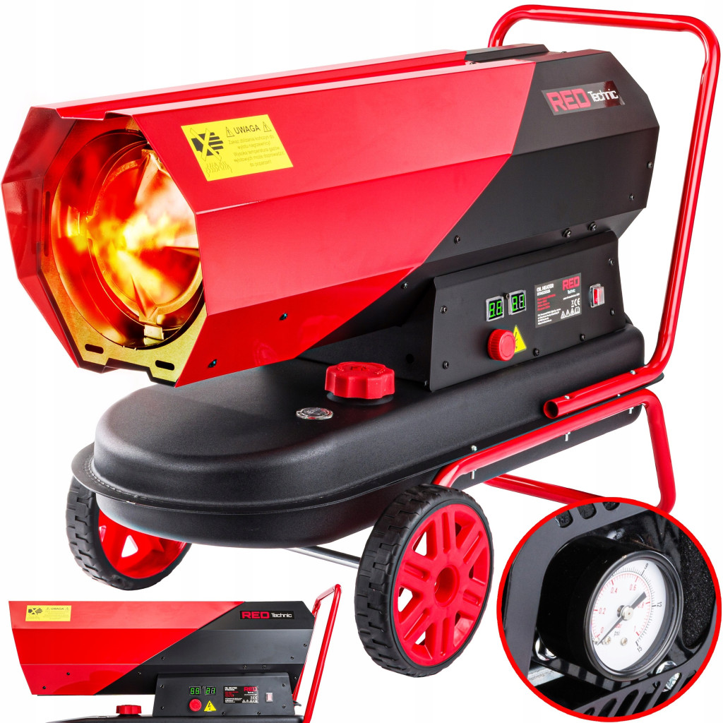 Nagrzewnica wyposażona jest w cyfrowy termostat z płynną regulacją temperatury. Zapewnia on wysoką wydajność cieplną i oszczędność paliwa.