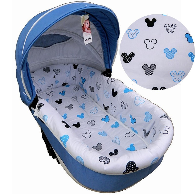 1----materacyk obszyty jest biała lamówką i posiada przeszycia ułatwiające dopasowanie do dna gondoli