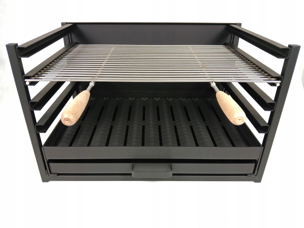 W przeciwieństwie do standardowych rusztów wykonanych z cienkich stalowych prętów powleczonych cienką warstwą chromu, nasz jest wykonany ze stali nierdzewnej gat.304 posiadającej atesty do kontaktu z żywnością.W zwykłym chromowanym ruszcie po kilku grillowaniach chrom zejdzie, a ruszt zardzewieje. Ruszt ze stali nierdzewnej nigdy nie skoroduje i łatwo się czyści z tłuszczu i innych zabrudzeń.