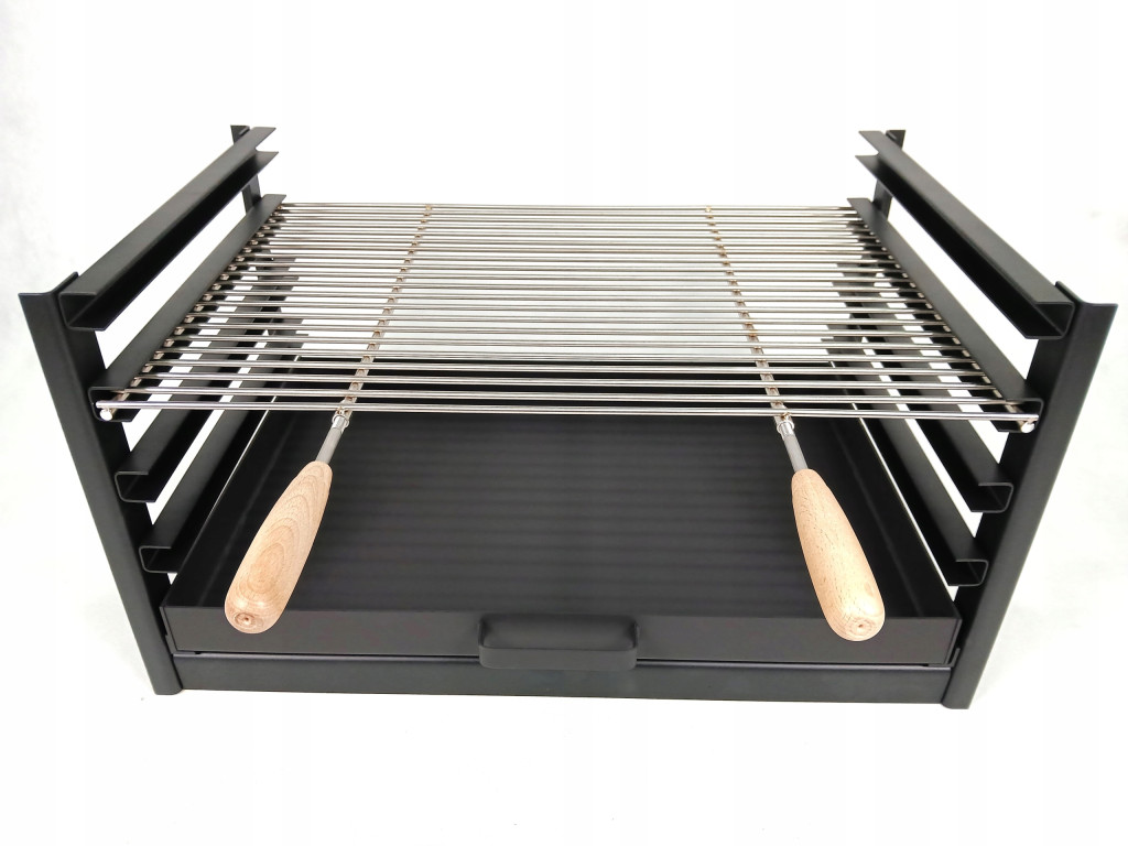 W skład zestawu wchodzi: ruszt nierdzewny, palenisko, stelaż: