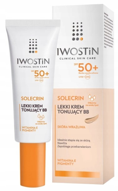 Lekki krem tonujący BB Iwostin Solecrin jest kosmetykiem łączącym w sobie właściwości krem ochronnego z podkładem. Nałożony na skórę: