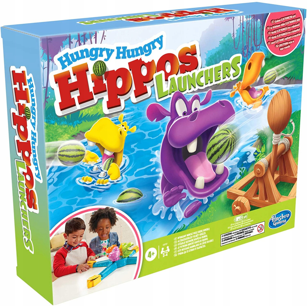 Zautomatyzowana gra z wyrzutniami głodnych hipopotamów jest idealna na spotkania dla dzieci i jako rozrywka na deszczowy dzień.