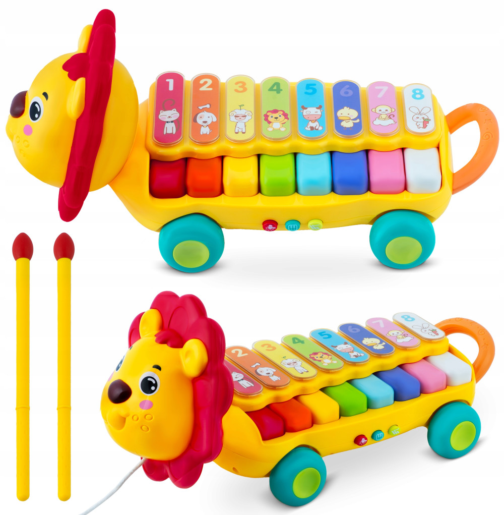 Produkt idealnie nadaje się do nauki nazw zwierząt i kolorów. Posiada panel muzyczny i świecące klawisze.