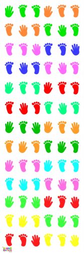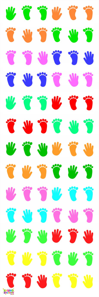 Kolorystyka: biała mata z nadrukiem stópek i rączek w różnych kolorach