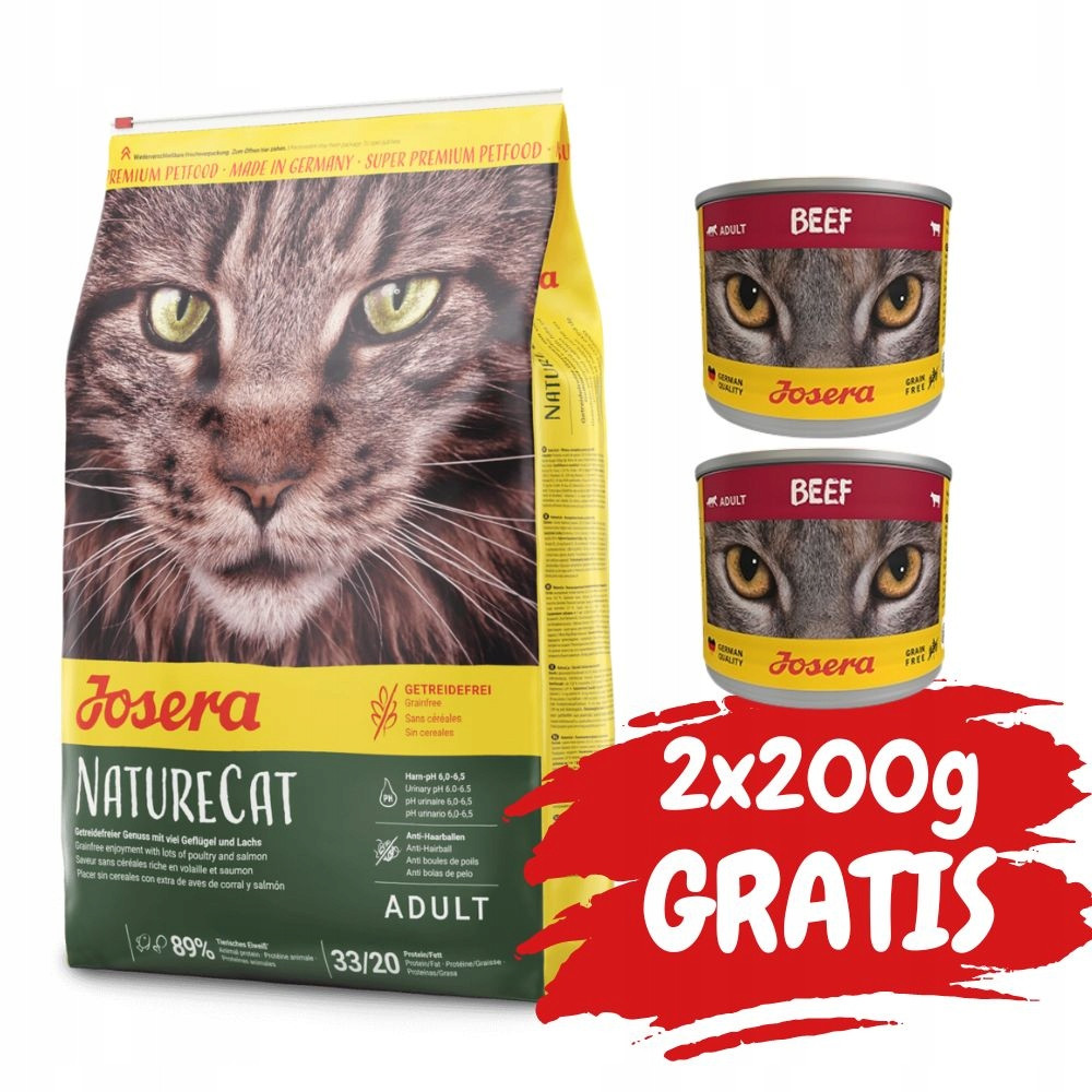 Czy Twój kot nie toleruje zboża i jest prawdziwym tygrysem? Karma JOSERA NatureCat to prawdziwy rarytas dla kotów odkrywców i poszukiwaczy przygód. Bezzbożowa karma dla kota zawiera formułę, która szczególnie polecana w codziennej diecie wrażliwych kotów i kociąt od 6 miesiąca życia.