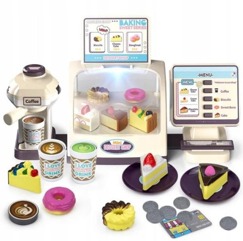 W zestawie znajdziesz również ciasteczka, kubeczki na kawę na wynos, kartę kredytową oraz pieniądze - wszystko, czego potrzeba do realistycznej zabawy.