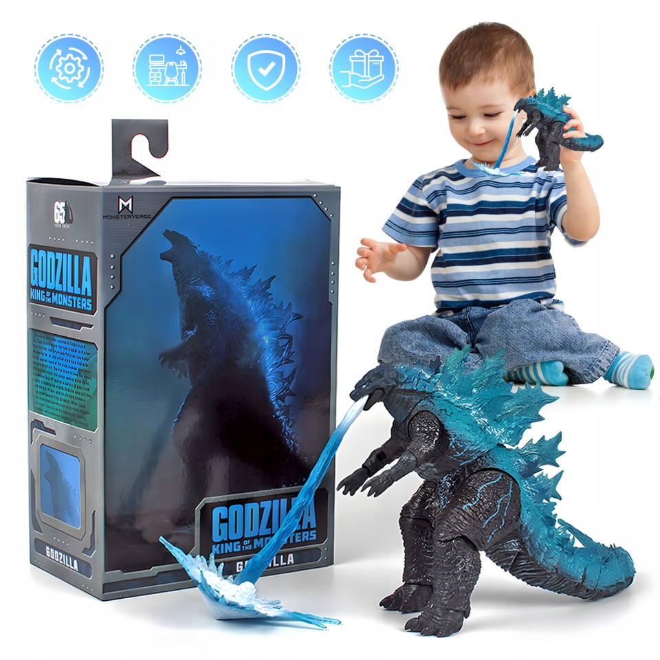 Godzilla vs. Kong to najnowszy film o wielkich potworach z 2024 roku, który stał się hitem wśród fanów groźnych olbrzymów. Superdoładowana Godzilla, pochodząca filmu jest jeszcze większa i sieje postrach wśród wszystkich mniejszych istot – figurka wiernie oddaje jej wygląd, a szczegóły, które idealnie dopracowano sprawiają, że dzieciaki będą mogły odbyć iście realistyczną zabawę! Figurka ma 30 cm wysokości, jest czarnego koloru, ma masywne ciało i stosunkowo małą głowę z niewielkim pyskiem, wypełnionym ostrymi zębami. Wzdłuż całego grzbietu, aż do końcówki ogona, widnieją niebieskie kolce, zaś na klatce piersiowej potwora widać ranę bojową – czy to wynik starcia z King Kongiem?