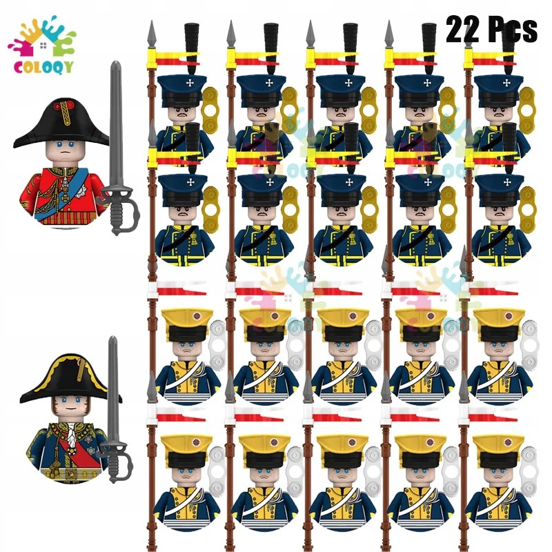 Zabawki dla dzieci wojna napoleońska linia piechoty klocki francuskie ułany ułanów mini figurki zabawki dla juguetes prezenty świąteczne.